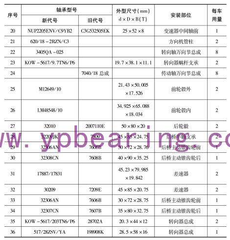 | 序号(hao) | 軸承型号 | 外形尺寸(mm) | 安裝部位 | 每(měi)車用量 | |